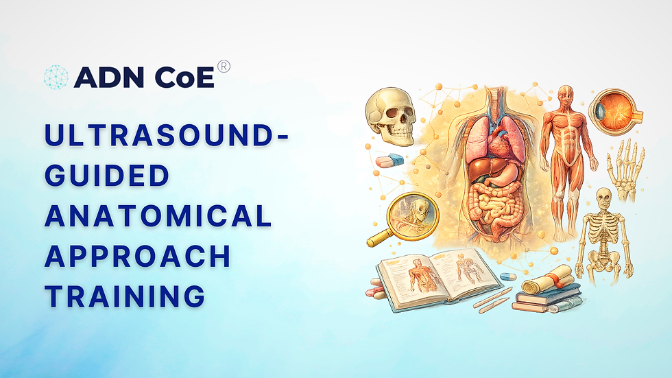 Ultrasound-Guided Anatomical Approach Training is a focused educational program designed to enhance anatomical understanding, spatial orientation, and clinical correlation through ultrasound-based anatomical visualization. Hosted at the ADN CoE Training, Research Center & Core Lab, this two-day program integrates structured theoretical education with guided demonstrations and case-based learning, emphasizing real-time anatomical orientation using ultrasound imaging.